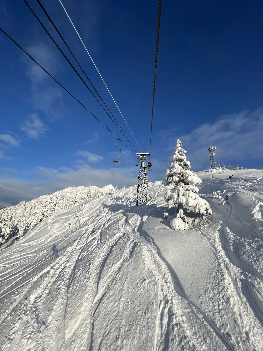 Mt. Eyak operates a 1939 vintage American Steel and Wire single chairlift. This lift was brought to Cordova, Alaska from Sun Valley, Idaho. First installed in Sun Valley, on Mt. Baldy's Christmas Ridge, it was decommissioned in 1969. In 1974 this lift was moved to Cordova, Alaska and installed above town on the southern flanks of Mt. Eyak. with a length of 1800 feet and a vertical rise of 966 feet it was operated in its original configuration until 1986 when the original haul rope was replaced and new Riblet grips were installed. in 1988 an upgrade was started, with the drive beiing reconfigured from the top to the bottom. A new hydraulic drive, new diesel auxiliary, new caliper brakes, and new control wiring were installed. In 1998 a new handle tow was installed to replace the home built rope tow, which had served beginners in Cordova since the early sixties.